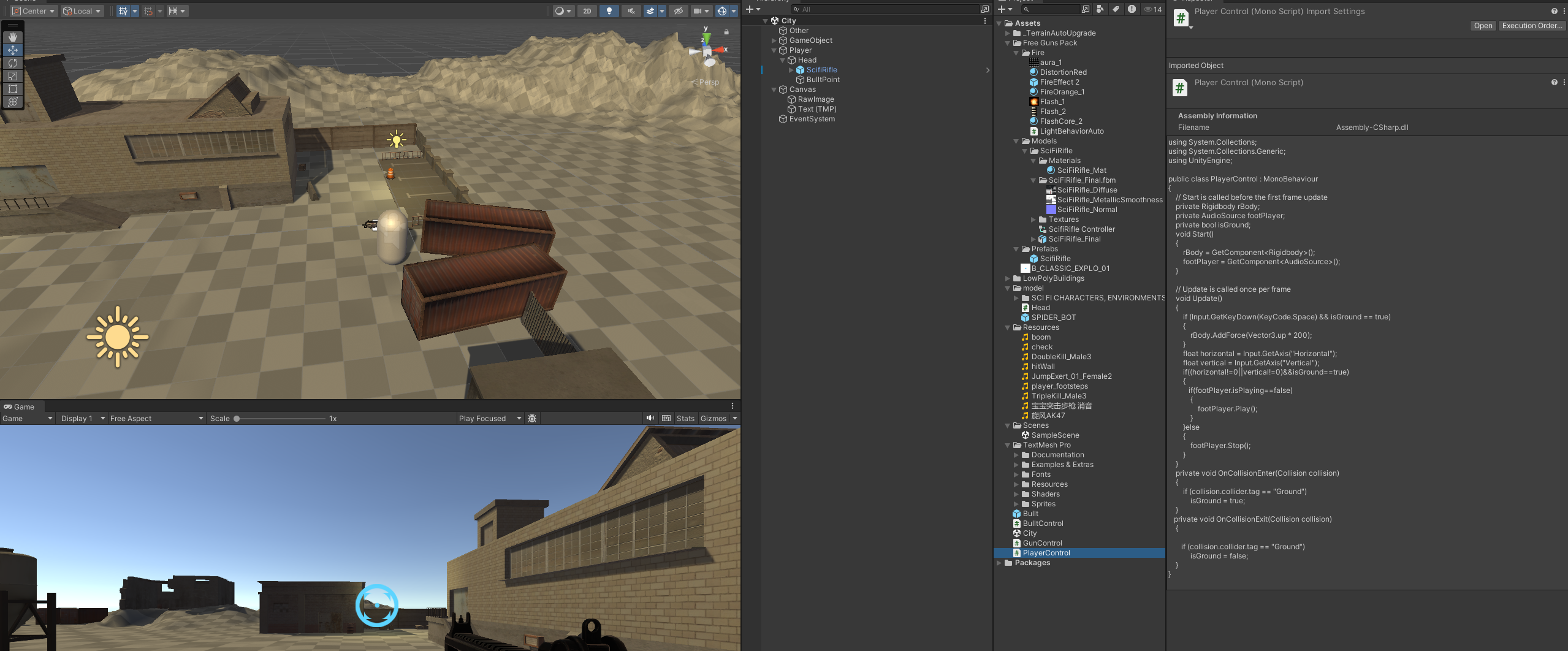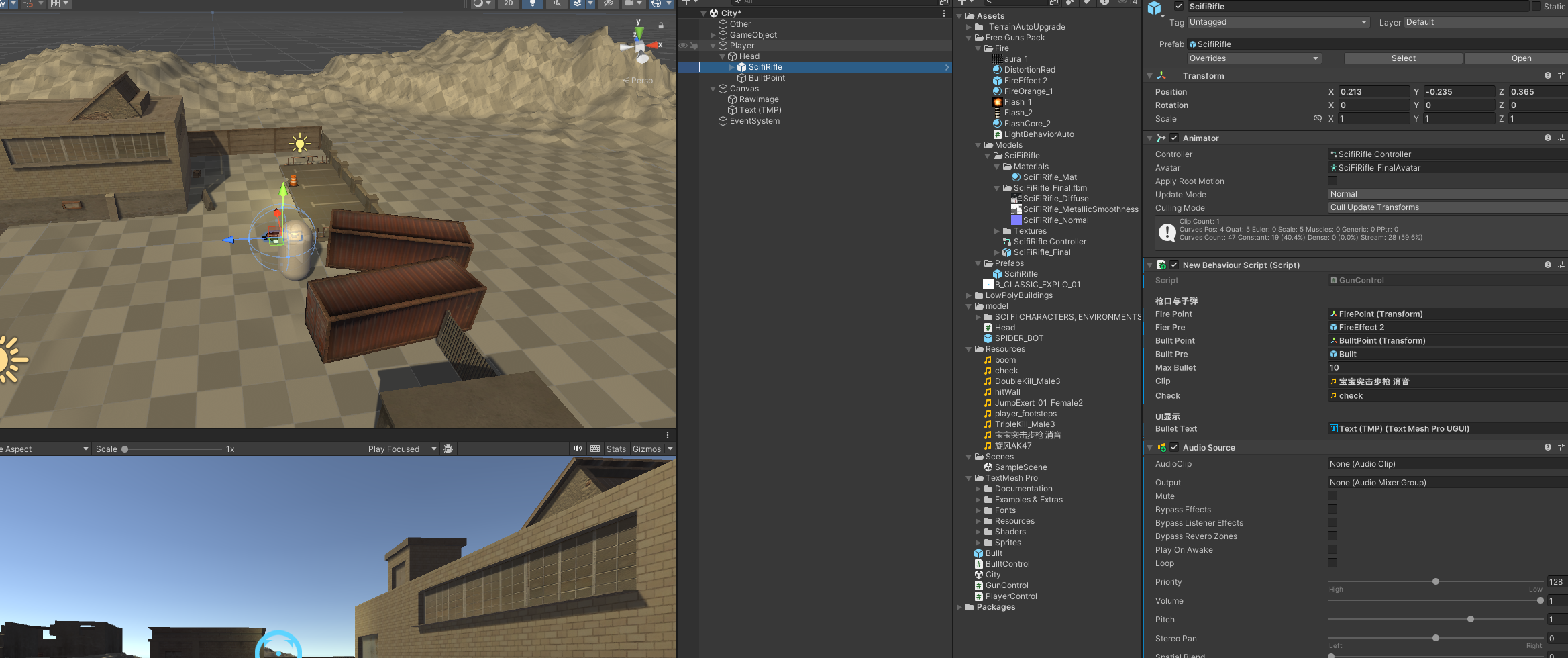 5. 游戏的视听效果优化,实现枪声、换弹声、跳跃声的播放,以及射击火光、弹壳弹出等射击特效的触发与展示。