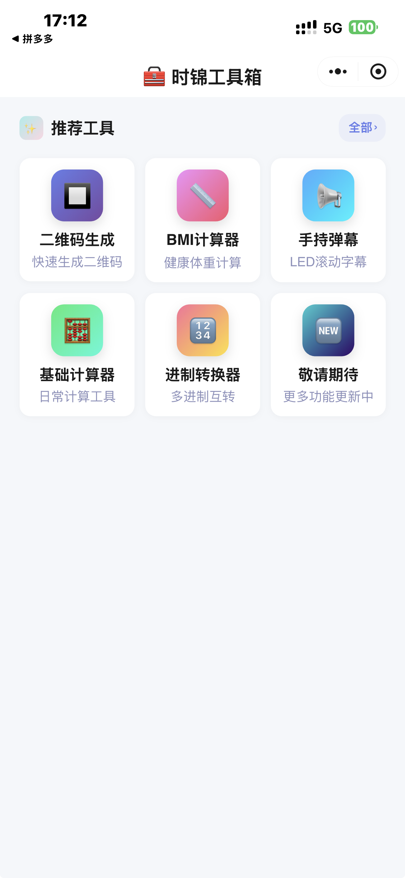 做这款小程序的初心,其实源于自己日常的细碎痛点。不知道你有没有过这样的经历:想生成一个二维码、算一下 BMI 数值、转个进制,却要专门下载一堆 APP,或是在网页里翻找工具,要么被满屏的广告打扰,要么操作步骤繁琐不堪。而微信小程序 “用完即走” 的特性,刚好完美适配这类轻量需求。于是我便萌生了一个想法:做一款纯粹、无广告、开箱即用的工具合集小程序,把日常高频用到的小功能整合在一起,让大家不用再为一件小事折腾半天。