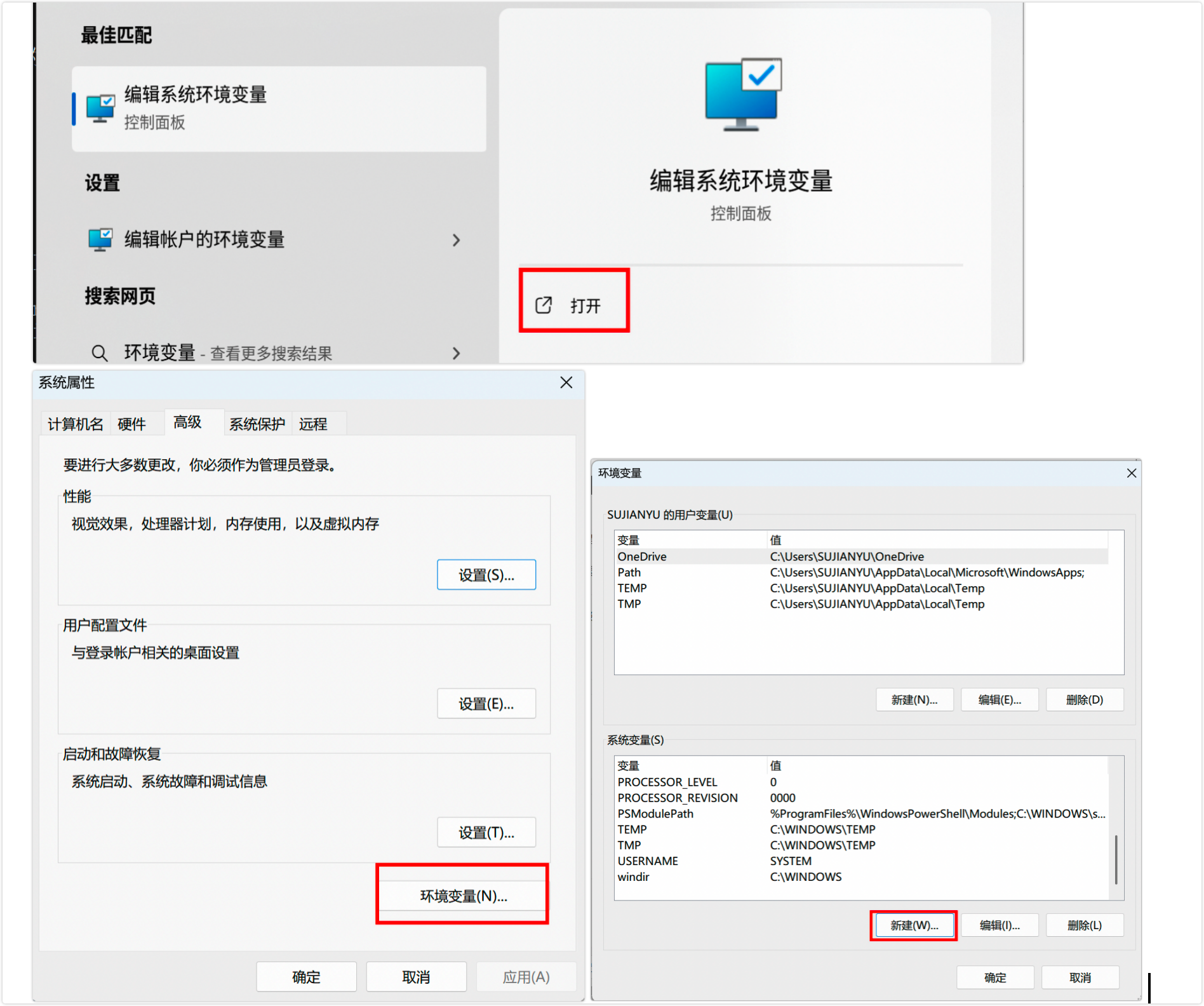 直接搜索环境变量打开